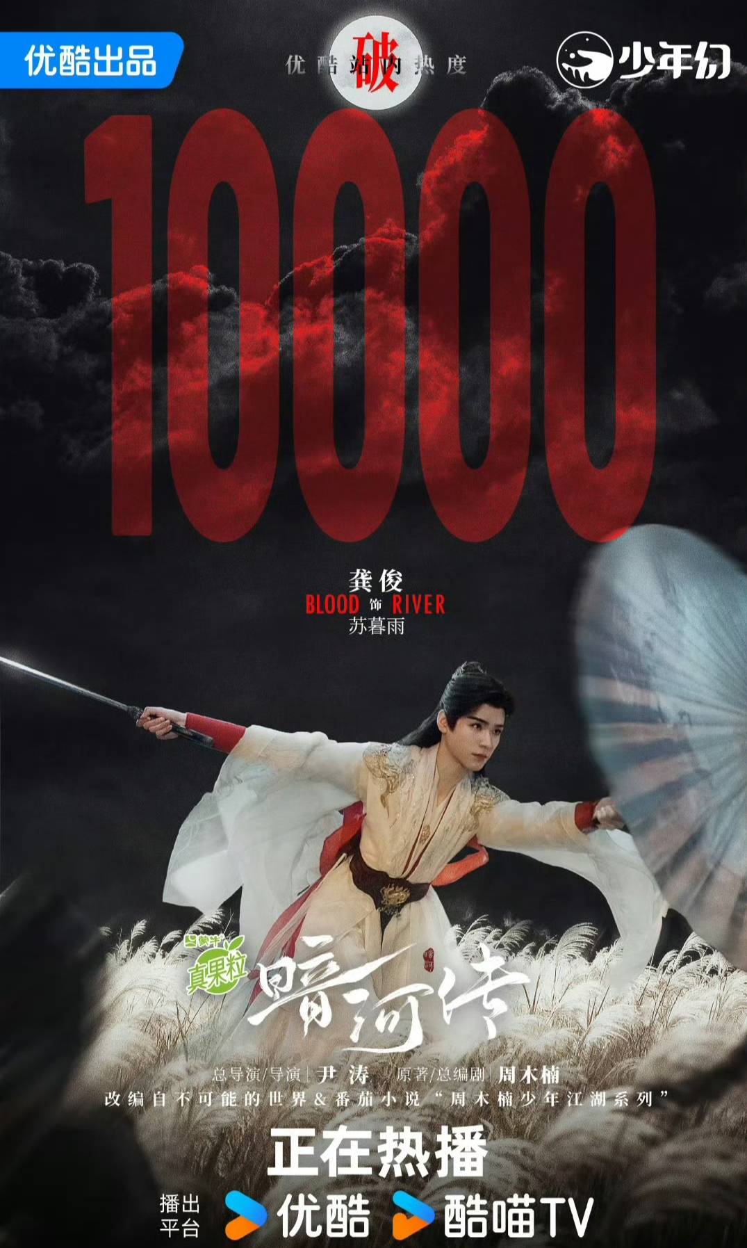 首播当日,剧集热度如火箭般攀升。据云合数据显示,正片有效播放市场占有率达6.3%,开播次日热度值飙升至8506,而到10月22日,该剧热度值正式突破9000大关。更令人震惊的是,10月25日晚间,#龚俊暗河传破万#话题空降热搜榜首,优酷平台实时热度定格在10032,成为2025年首部热度破万的武侠剧。这一成绩不仅超越同期《入青云》,更直接碾压《庆余年2》首周18.7%的市场占有率。